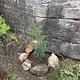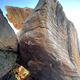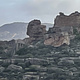 As for Base Camp but continue on the cairned trail up the valley, crossing the stream and heading up the hill to a small flat area. From there it is a bit of a scrabble up to the main area which is directly up left below the cliff-line. The Pudding Stone is on top of the plateau above 500m further along.