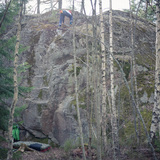 Wall Jeesuskala used to be steep and high before the landfill. What is left now is a couple of easy routes about 2,5m high and the lower blank wall is still around 3,5m. Also some low routes in the woods.
