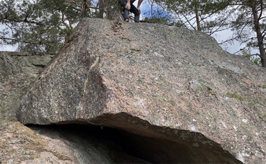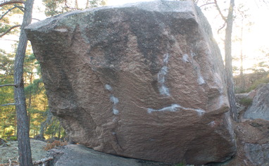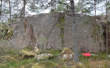 Parking or driving on the private road is not allowed. Park at the marker, next to E22 (there is also a small pipe tunnel to walk underneath the main road). Walk with the gravel road for around 400m and you'll see a small path wandering off to the right. Follow this for 50m and you have reached your destination.