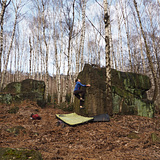 Sector Central South is located in the lower part of the Modřín area. This sector hasn’t been mapped until now, even though it was discovered more than 10 years ago. The sector offers around 50 easy problems in a beautiful flat forest. A creek called Skalní potok, which springs just above the sector, flows right through the center of the place. The sector is suitable for groups with children.