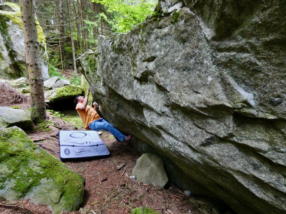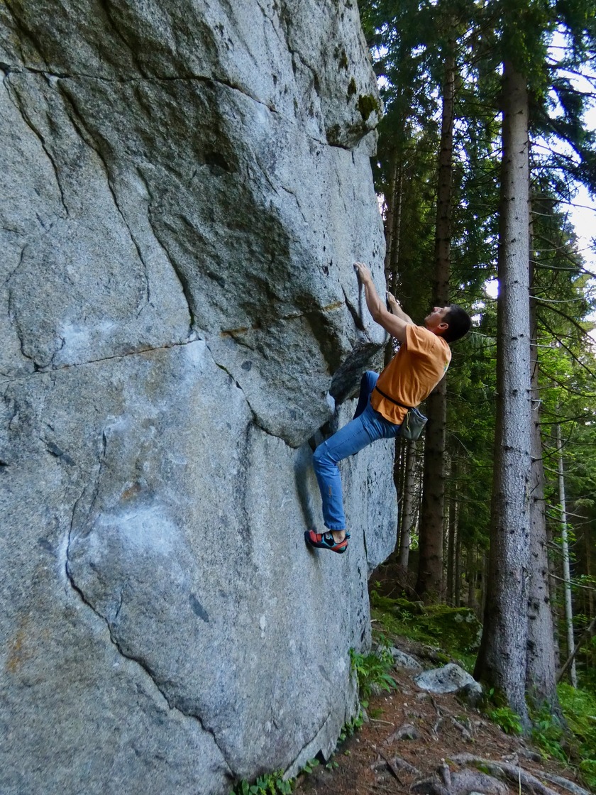 Let’s spend a few more words to describe the climbing in Daone. You can find almost every style in the valley since the amount of boulders is crazy. High-balls, slabs, powerful overhangs, slopers, crimps, perfect cracks and knobs. Yes, the knobs are particular holds having the shape of small mushrooms that are characteristic of Daone’s granite. There are also some sector with sport routes and multi-pitches. One final note: do not come during rainy days, cause the problems could be wet. Daone is a fairly humid valley and the shady boulders take some time to dry. But do not worry, those exposed to the sun dry very quickly!