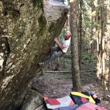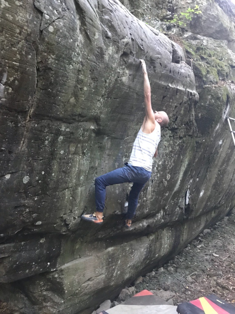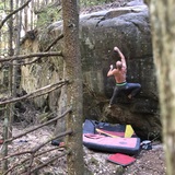 A slightly overhanging wall in a dark forrest with smooth rock. A couple of nice established problems and some projects to be done.