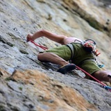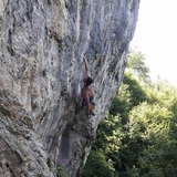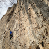 Bella parete a buchi con tiri lunghi anche 40 metri in leggero strapiombo.