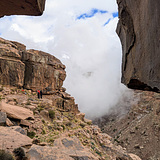 The Nearest parking spot is approximately 600m lower. You will need to climb/scramble for around 50m to reach the first blocks. The tallest blocks are almost on the edge.