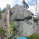 Ett enskilt block med ca 10 problem mellan grad 4 och 6C, samtliga kan klättras med en pad. Mindre än 1 min approach.