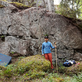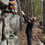 Harvinainen helmi. Matalia reittejä ensimmäisiä kesiä ulkona kiipeäville. Tai jo vuosia tahkonneille veteraaneille. Myös lapsi ystävällinen matalahko kallio seinämä. Ja siirtolohkare Aurinkosektorin päällä. Hyvää kiveä. Yli 50 reittiä pienellä alueella. Suurin osa yhden bädin bouldereita. Muutama korkeampikin joukossa ja pari pultattua vähän vaikeampaa. Vasemman laidan matalat boulderit kuivuvat melko nopeasti. Oikeassa laidassa varjoisia vaikeampia ja korkeitakin boulder reittejä sekä muutama matala sportti reitti. Greidit: 3+ - 7A+. Vasen laita = Aurinkosektori sopii erinomaisesti sisäseiniltä ensi kertaa ulkobouldereille siirtyville. Kakarakalliolla on yli 20 kpl alle 6a:n vaikeustason reittiä. Puistossa kulkee muitakin, joten toimitaan siivosti.