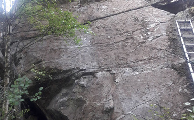 Ett stort sprucket block. Funkar på sommaren. Access längs med åkerkanten.