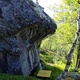 Parkering til venstre 50 m inne på veien til Crossbanen. Fra midten av P: Gå rett ut i skogen mot fjellsida. Følg sporlysfallskjermer i trær. Til slutt rett opp bratt side til platå..