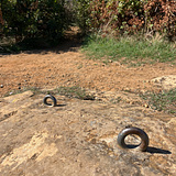 Alcune linee sono attrezzate con fittoni resinati un po’ datati, mentre altre hanno spit arrugginiti. Per questo motivo, consigliamo di arrampicare esclusivamente in top rope, calandosi dall’alto da uno dei tre ancoraggi situati sul pianoro sommitale. Un ancoraggio è dotato di fittoni resinati, mentre gli altri due hanno spit. Sull’orlo della parete sono state fissate placche di metallo per ridurre al minimo l’abrasione della corda. È importante controllare attentamente lo stato delle soste prima di iniziare la calata.