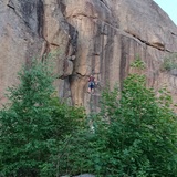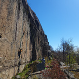 🇬🇧Mokollen is Sandefjord's most central climbing crag, and is almost 30 meters high, just below the popular viewpoint where you look out over the city and the fjord. When you drive towards the town on RV305 you see the obvious top and the wall on the left side when you approach the second bridge going the road.