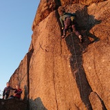 Husk å bruk hjelm både når du klatrer og når du sikrer, då det er en utsiktspunk på toppen og det dessverre kan komme noe ned fra toppen.