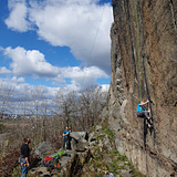 Remember to wear a helmet both when climbing and when belaying, as there is a popular viewpoint at the top and unfortunately things can fall or be thrown down from the top.