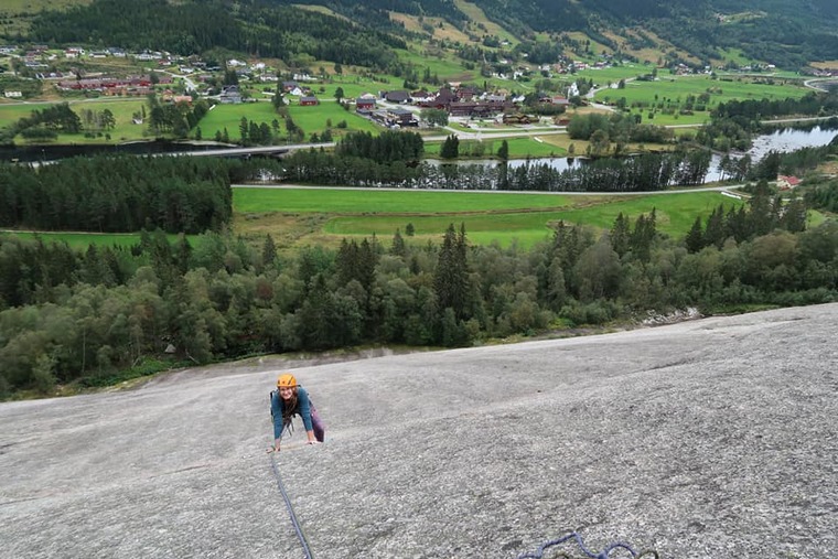 Perfect slab climbing area directly above the village of Valle. The high-quality rock mainly provides friction climbing in inclined slabs. Routes near the waterfall dry longer but there are also routes that dry out during one day after the rain. All the time there is a beautiful view from the rock of the village of Valle, the river Otra and the whole upper part of the Setesdal valley. Especially in the northern sector, there are plenty of trails suitable for beginners.