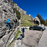 Climbing is ideal in winter and mid-season, thanks to sun exposure, but too hot in summer. Approach is ridiculously short and the closely spaced bolts make this area family-friendly and accessible for all climbers.