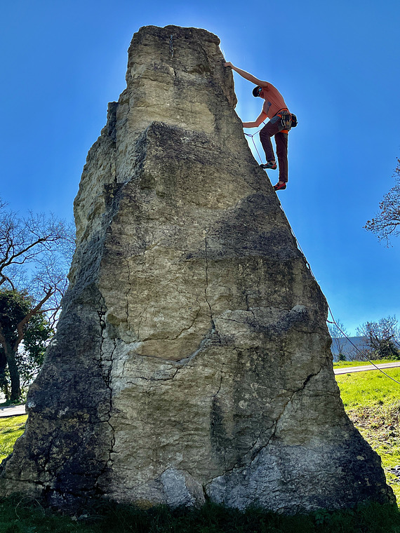 Il Sasso d’Orlando si distingue per la sua forma unica, un pilastro alto e stretto con una campana posta sulla cima. Suonatela per celebrare la vostra salita, poi godetevi un’emozionante discesa in corda doppia di 30 metri nel vuoto. Sebbene le vie siano pulite e ben protette, le grandi fessure sui lati del pilastro richiedono cautela. L'uso del casco è vivamente consigliato e l'arrampicata qui non è raccomandata a meno che non siate esperti e attenti alla qualità della roccia.