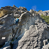 Troverete le falesie Sasso Sinistro, Sasso Destro e Placche Alte. Questi settori offrono 29 vie in totale, che vanno dal 4a al 6c+, principalmente su placche molto ruvide che richiedono un ottimo utilizzo dei piedi. Ci sono alcune sezioni strapiombanti con prese scavate, ma nel complesso aspettatevi un'arrampicata tecnica su roccia compatta.