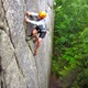 Descent from the cliff should be to the (climber’s) left to avoid getting too close to the house on the right.