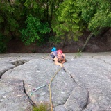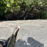 West-facing crag that dries quickly after rain. Pine trees give shade even after the sun comes around at noon. The granite is compact, clean and offers nice crack climbing. This is an excellent place to practice your jam technique.