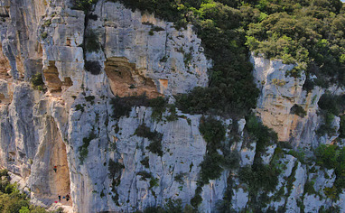 🚶🏻From Finalpia, you can follow the road towards Calvisio. After about 2 km, you will find a crossroads where you will have to turn right and take the road that leads to Verzi. Continue along this road for about 1 km. Afterwards, you will have to make a detour to the left on a Roman road which will take you up on a valley. You will come to a clear widening located at the base of a structure. From this point, you can see a comfortable path on the left that crosses a river and then begins to go up, marked by a red diamond-shaped trail marker. By following this path for about 15 minutes, you will reach the base of Settore Sud. You can continue along the right wall to get to Settore Sud Est, which will take another 15 minutes. From here, passing an area with blocks, you can reach Settore Est.To reach Settore Est, you can also start from the first Roman bridge and follow a path that climbs to the left up to the third hairpin bend. At that point, you will have to turn right following a track that will quickly lead you to the base of the sector. To get to Settore Ovest you need to pay attention just before you get to the Settore Sud Est. Continue to cross to the left along a path marked with a red diamond-shaped trail marker. You will have to leave the path when it starts to climb in the wood immediately to the right of the big red cavern. This part of the journey will take approximately 20 minutes.