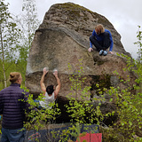 Two main boulders in a clear-cut plus a highball close to the road with a variety of nice problems ranging from easy low balls to hard highballs. A couple of hard projects are waiting for ascents.