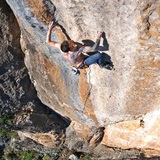 Technical climbing on compact rockl. In summertime the wall goes in the shade around 15h00. Very good for days with Mistral winds.
