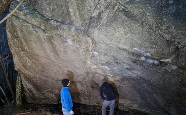 Use your brain when you park, leave space for others. Short approach to all boulders. Be respectful with noise and don’t leave trash. Bolting is forbidden as it is a protected site.