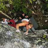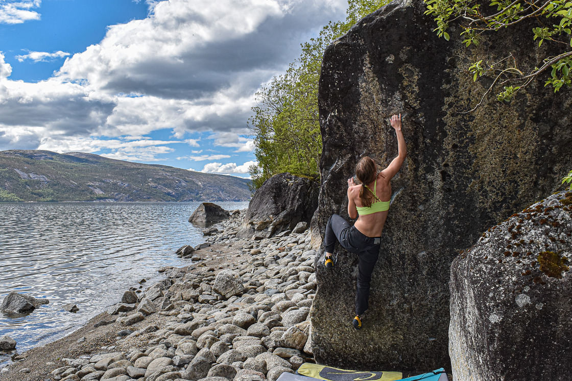 🧗♀️⛰ Most of the boulders are scattered in a forest on the south facing hillside. The bouldering is primarily on free standing blocks of all angles. The rock quality is generally good and featured, though some boulders can be a little chossy. Landings vary greatly but are generally decent. In the main sectors, starting by "Nord og Ned" and uphill there are vague but recognizable paths, but to find some of the outlaying boulders you´ll need to go of track. Due to the lake being surrounded by mountains the air tends to stand still making the area dry slowly. And it can get quite humid in summer time.