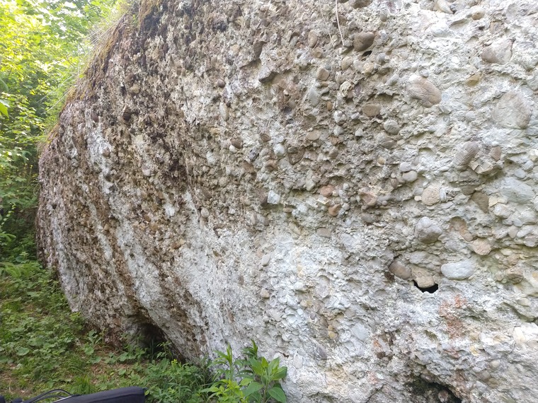 Climbing and bouldering here happens on a type of conglomerate rock called Nagelfluh. Climbing on Nagelfluh is characterized by often tiny pebbles and pockets that require strong fingers and lots of control in strenuous positions. This means lines are not always obvious, but there is a plethora of possible climbs and combinations, often with interesting moves that take some figuring out. Hard climbs are often centered around tiny two-finger crimps or bad pinches in steep terrain. Many climbs are "board style", but with smaller holds. Climbing here is therefore perfect training to get strong fingers and shoulders.