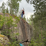 Vertical slab hidden deep in the dark forests of Orimattila. Short approach with good parking area for few cars. Mostly good flat landing.