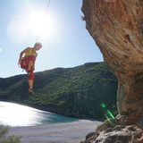 Vlychada feels like a hidden paradise. Picture a remote beach nestled in a protected bay, with crystal clear water and a cliff offering a wide range of climbing difficulties. You can start your day with a relaxing swim and sunbathing, then switch gears by midday to climb in the shade on pocket-filled routes, from easy slabs to steep, athletic lines.