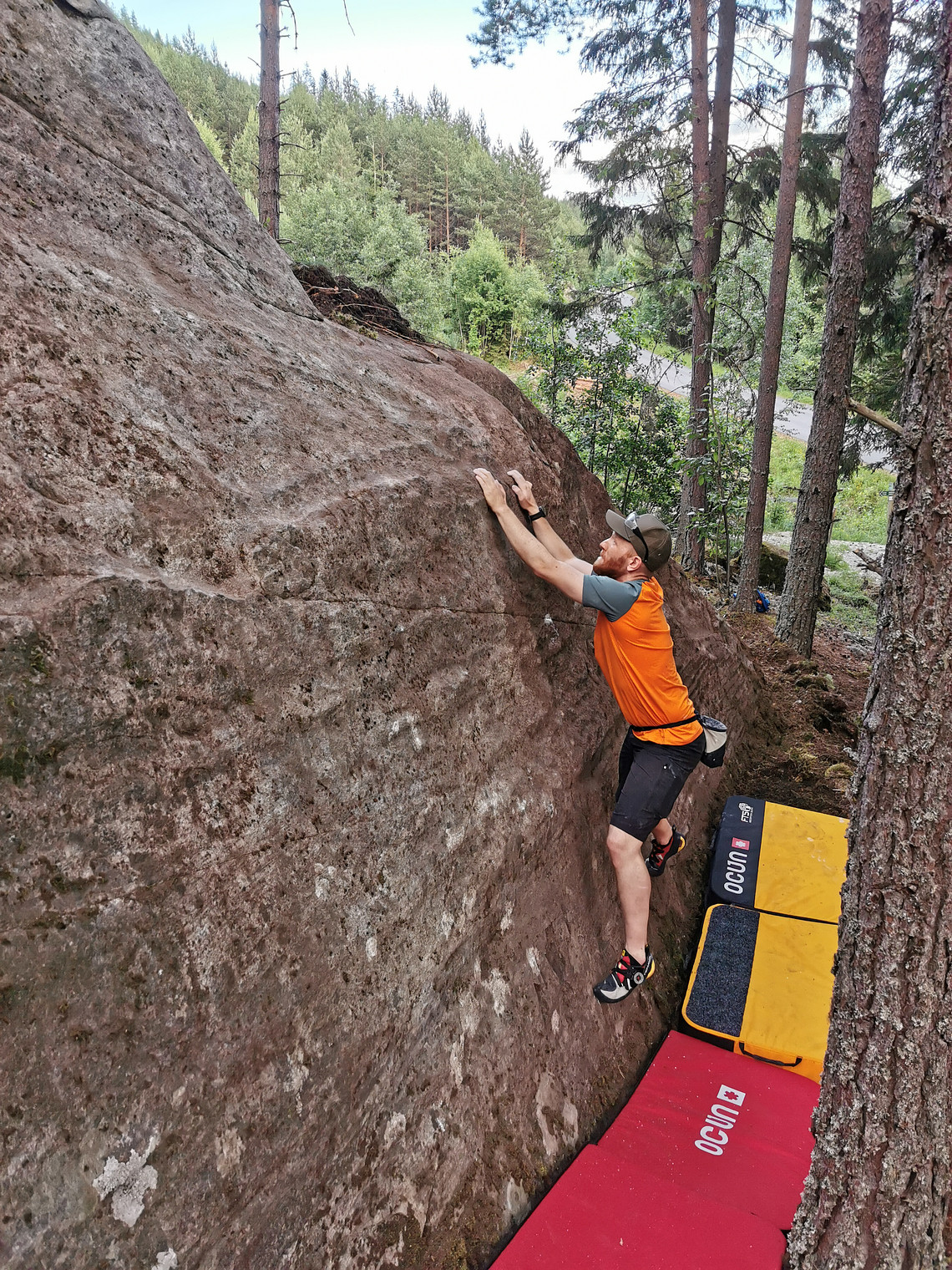 Guttorm Mathismoen går bulderet Friksjonsprøven (6A+) på Sykkelsvaet.