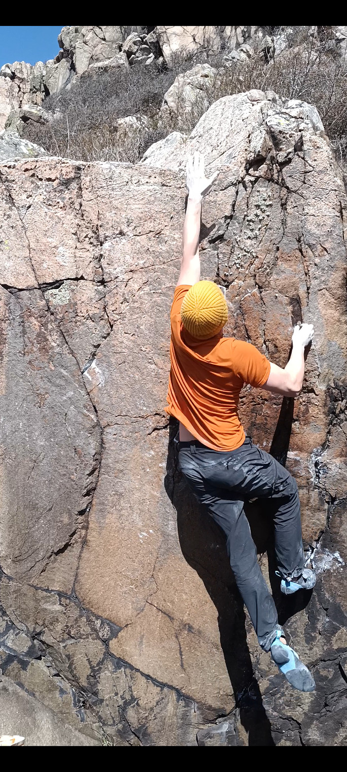 Johan Nilsson går för läppen under första bestigning på en av linjerna på väggen tystnadens grepp.